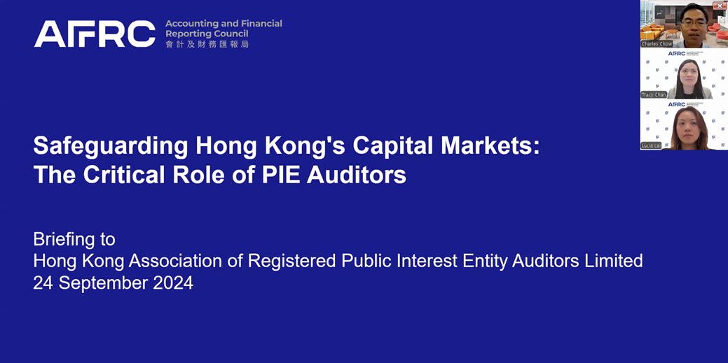 Co-organized with AFRC a webinar in explaining the findings and key messages of their reports including “Report on the Analysis of the PIE Audit Market in Hong Kong” and “Roundtable Discussion on Audit quality and Climate-integrated Audits in Hong Kong”