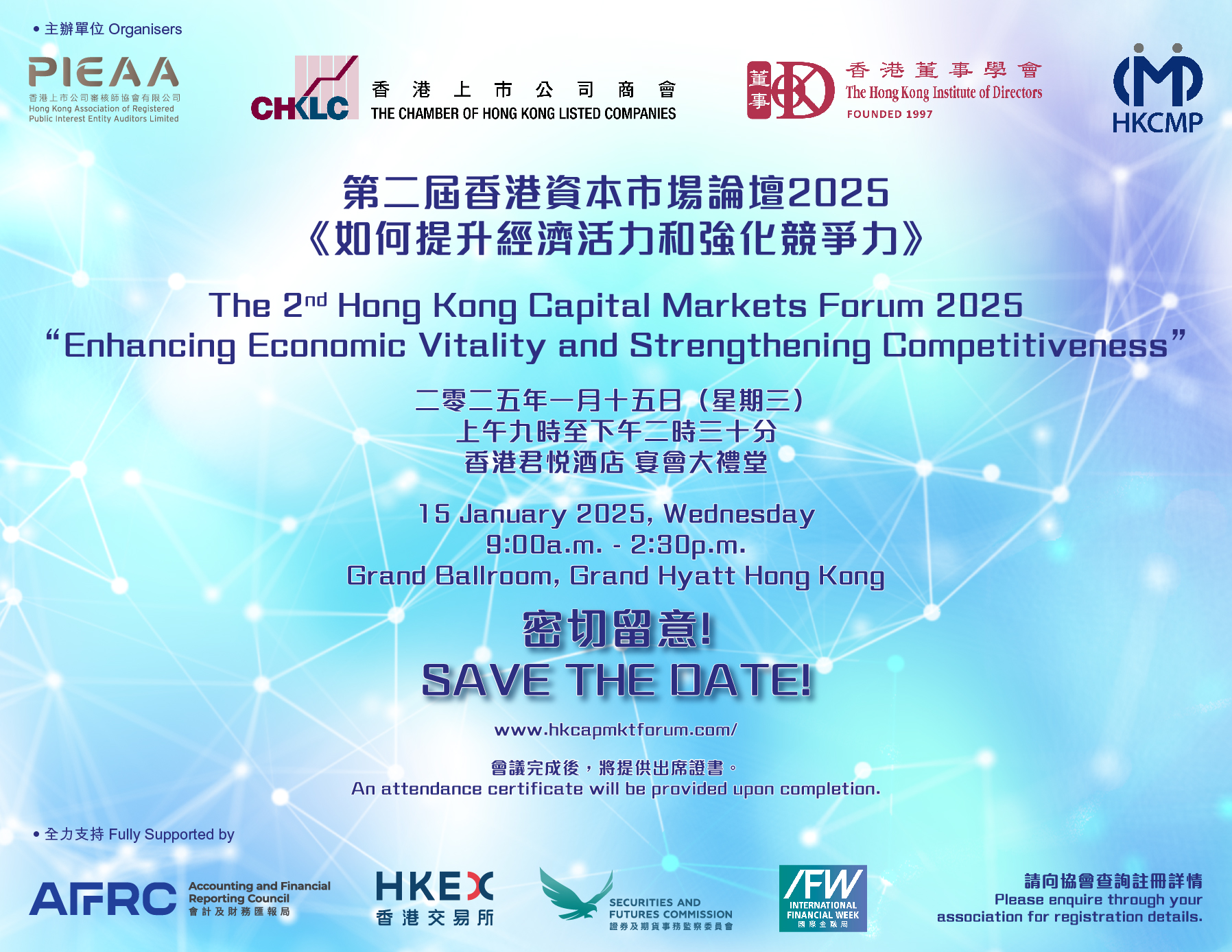 Jointly organized by Hong Kong Association of Registered Public Interest Entity Auditors Limited (PIEAA), The Chamber of Hong Kong Listed Companies (CHKLC), The Hong Kong Institute of Directors (HKiOD) and the Association of Hong Kong Capital Market Practitioners Limited (HKCMP)