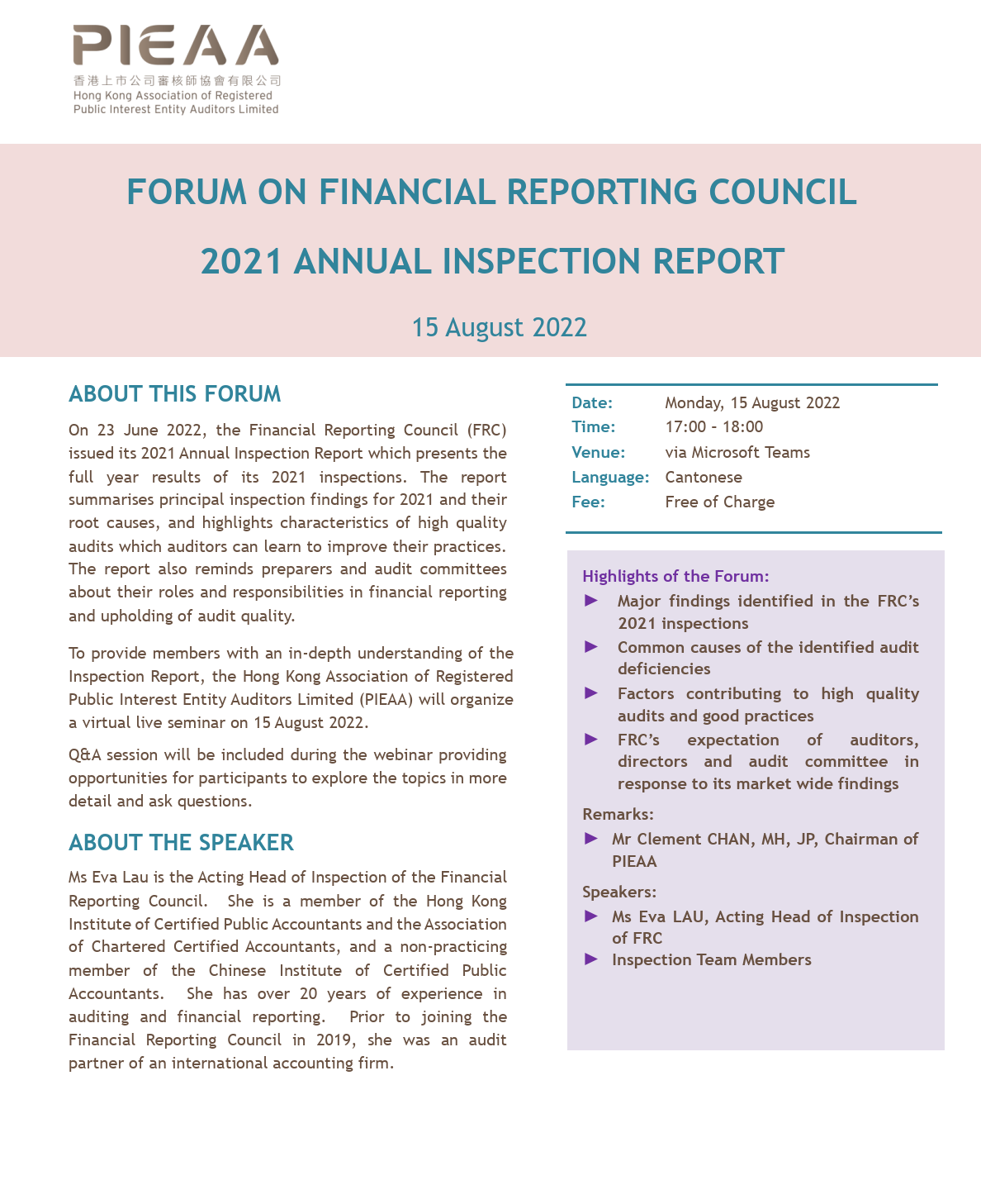 Virtual Live Seminar jointly organized with AFRC on 2021 Annual Inspection Report
