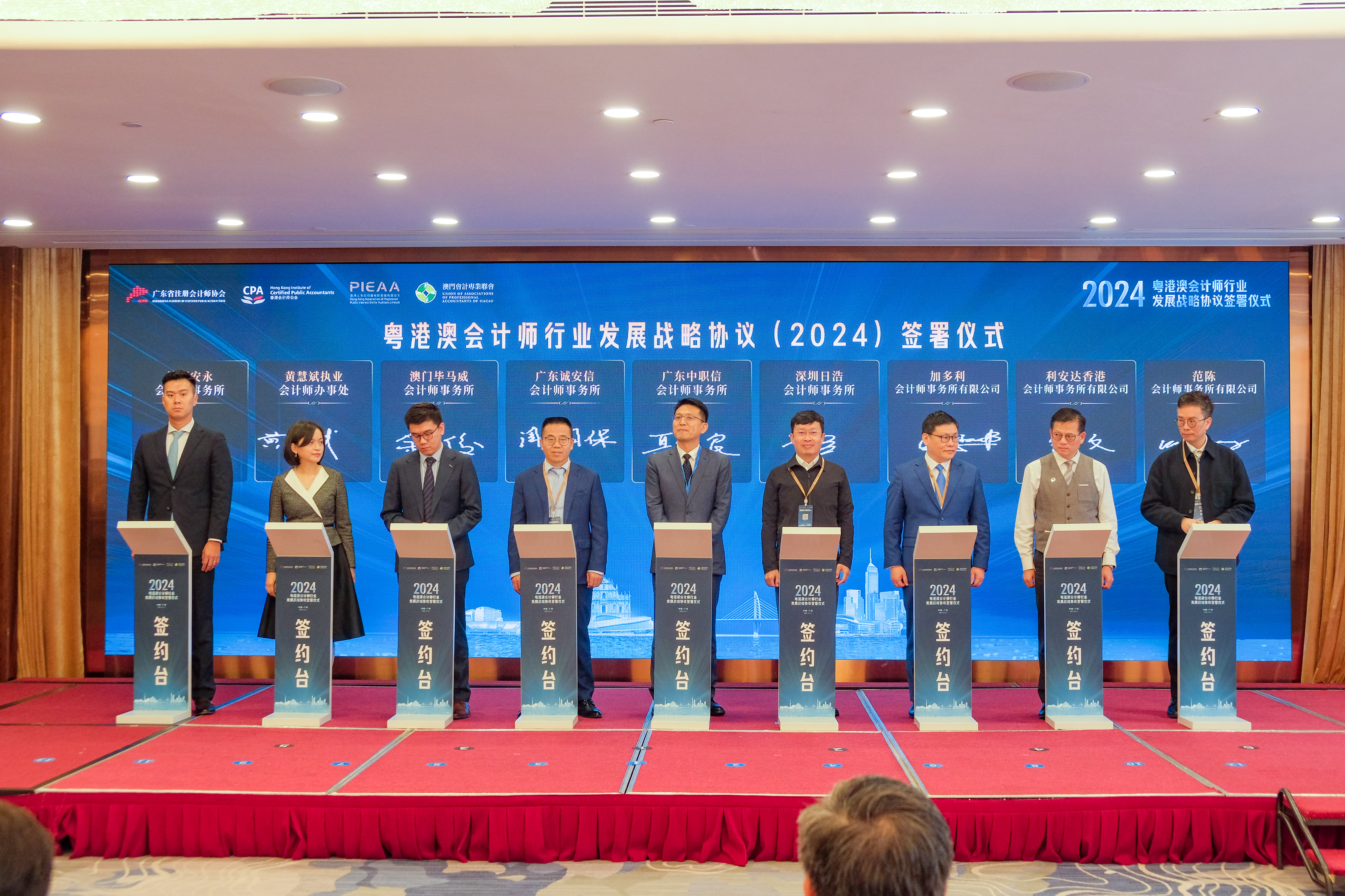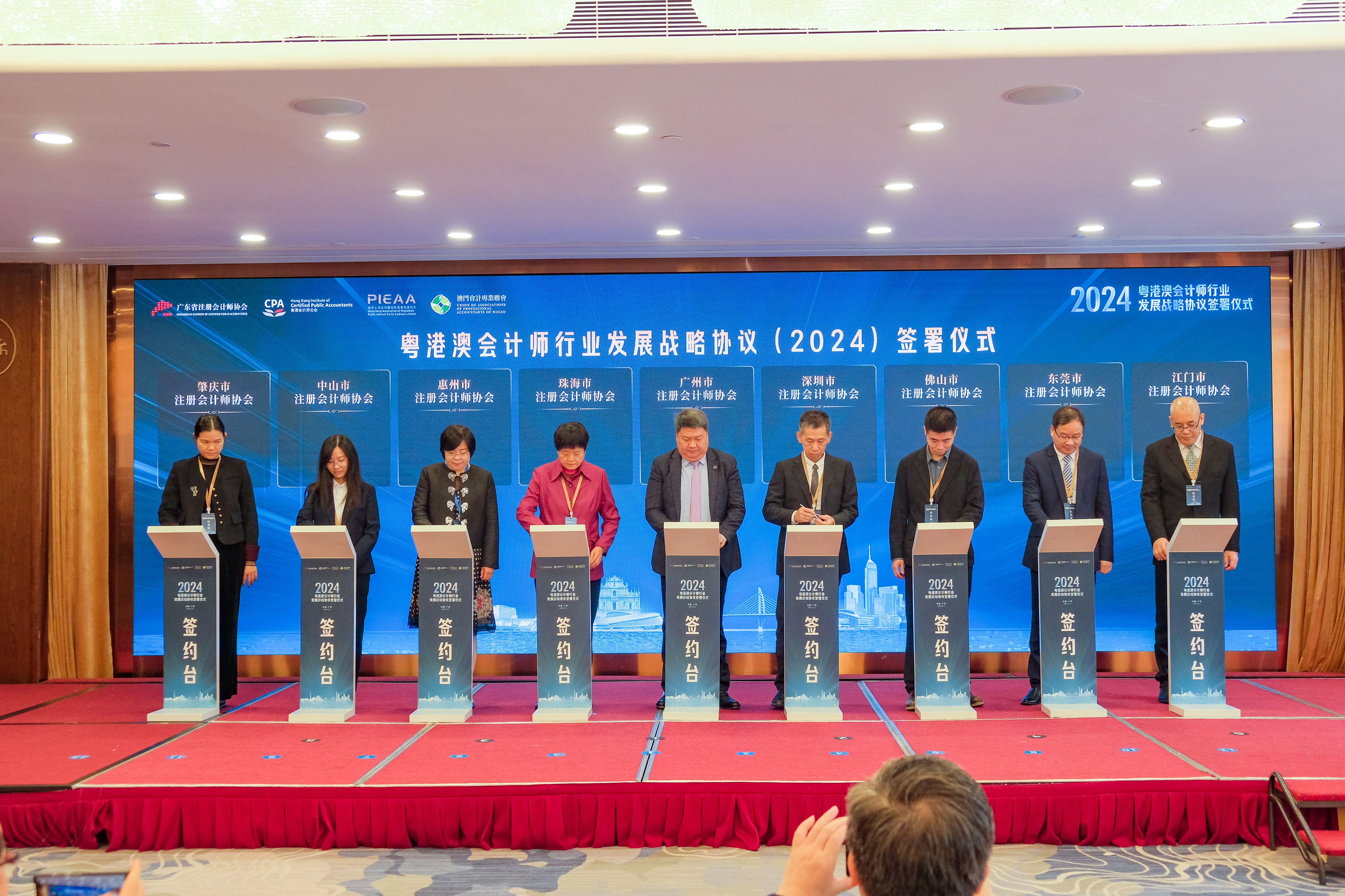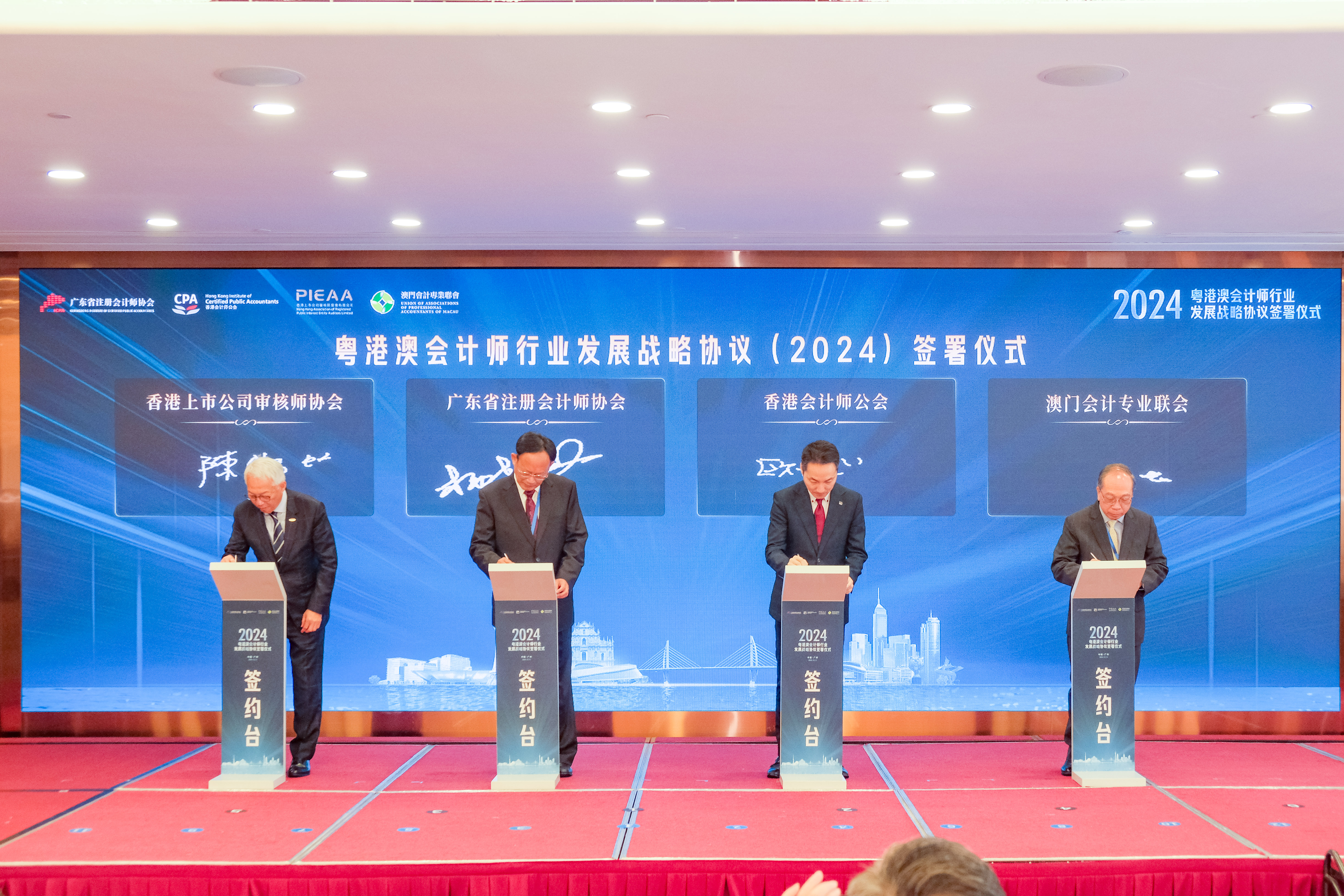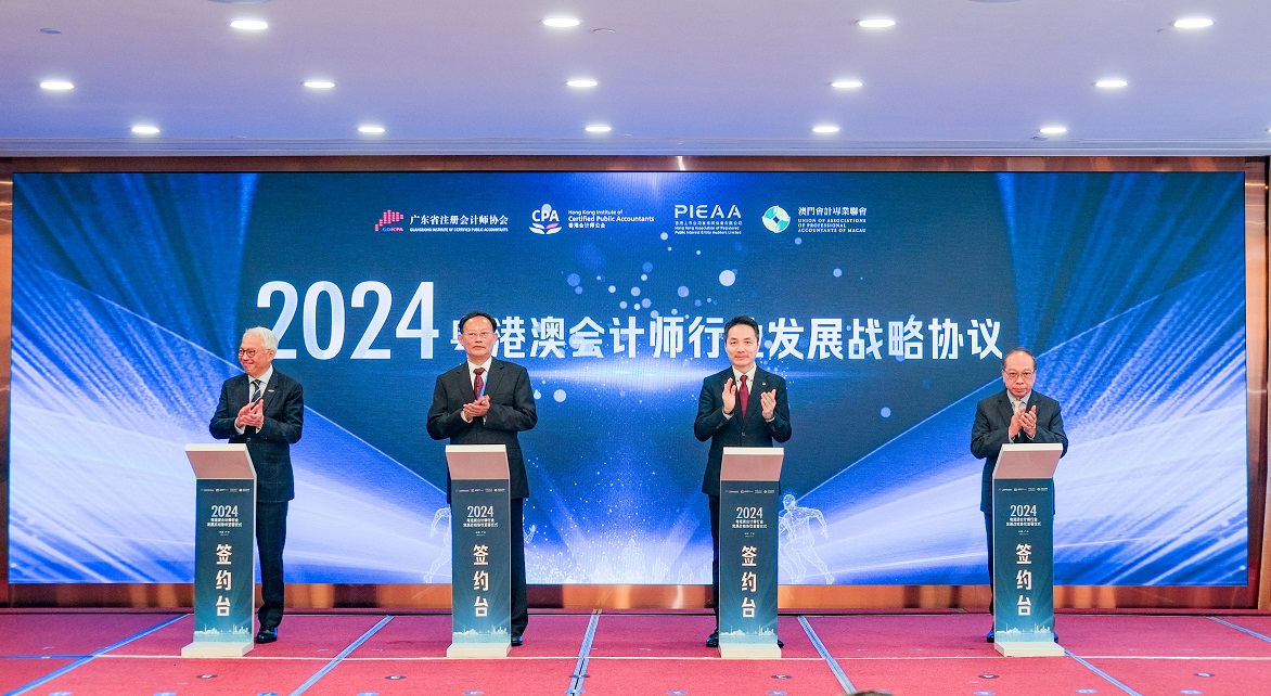 The agreement signing ceremony of the Guangdong-Hong Kong-Macau Certified Public Accountants Alliance was held at Guangdong Yingbin Hotel in Guangzhou. It was jointly organized by our Association, the Guangdong Institute of Certified Public Accountants, the Hong Kong Institute of Certified Public Accountants and the Union of Association of Professional Accountants of Macau. It was also the start date of the training course organized for young practitioners designed to enhance their competitiveness and interaction. The agreement confirms the continuation of efforts in fostering closer collaboration among Accountants in a seamless market created within the GHM in the years to come.